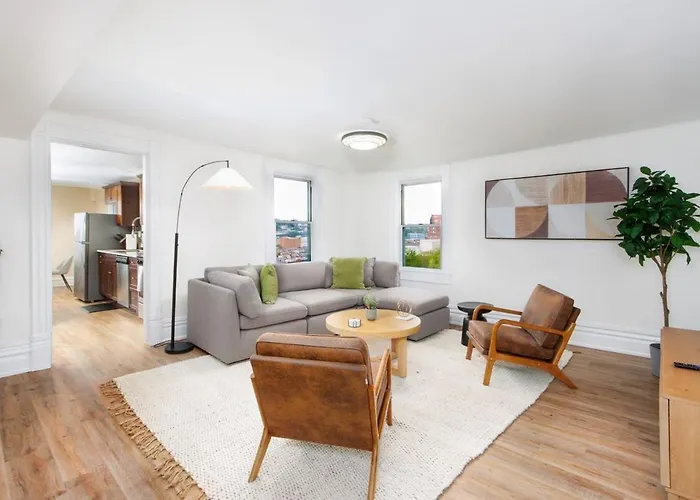 Welcome to the Stunning Apt W Rooftop & Game Room - Sleeps 10, a chic urban retreat ideally situated just 35 km from Pittsburgh International Airport. This expansive apartment is designed for both relaxation and entertainment, making it the perfect choice for families or groups seeking a memorable getaway. With spacious living areas that comfortably accommodate up to ten guests, it offers an inviting atmosphere that blends modern sophistication with homey comforts.